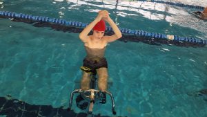 Los participantes de las semicolonias han podido disfrutar de una sesión de Cycling en la Piscina Municipal de San José. La actividad consistió en realizar ejercicios variados sobre la bicicleta acuática para trabajar todas las partes del cuerpo además del ejercicio cardiovascular.