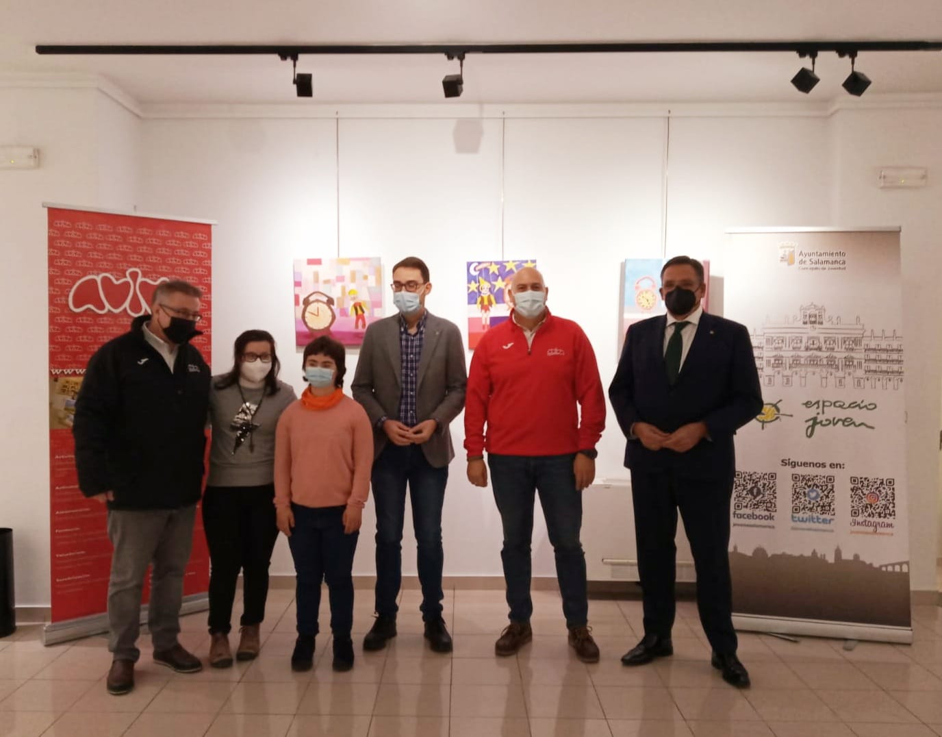 Esta mañana, el concejal de Juventud del Ayuntamiento de Salamanca, Angel Fernández, ha inaugurado la exposición junto al presidente de la Fundación AVIVA, Miguel Ángel Benito, el Director comercial y de marketing de Caja Rural, Agustín Pérez, Ana Raquel Seguín y Paula Sánchez, autoras de obras expuestas y Jose Luis Montes técnico de la fundación.