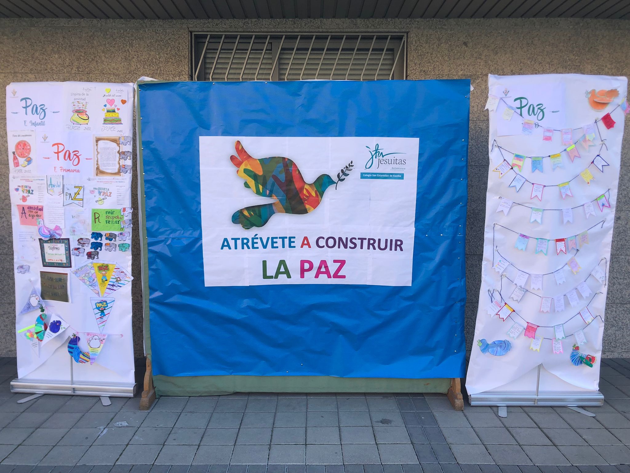Este actividad ha estado presidida por el mural realizado la semana pasada, se ha leido un manifiesto por la Paz y nuestro compañero David ha tenido el honor de realizar la suelta de una paloma como símbolo de compartir todos esos deseos de Paz con el mundo.