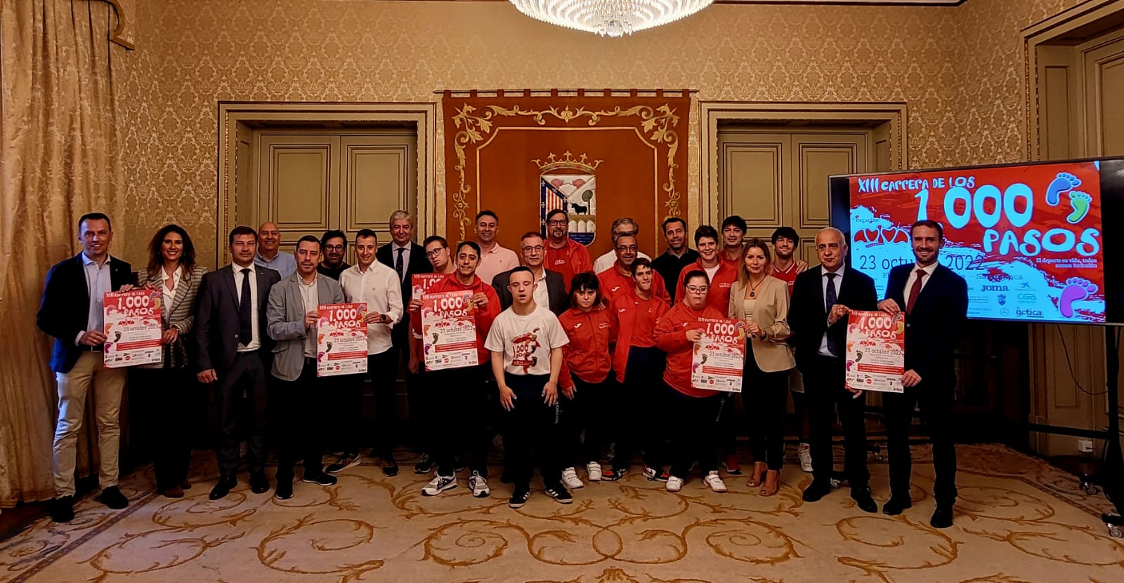 Esta mañana se ha presentado oficialmente la carrera popular y solidaria de los 1000 pasos de la mano de nuestro presidente Miguel Angel Benito. El acto de presentación se ha desarrollado en la sala de recepciones del Excmo. Ayuntamiento de Salamanca con la presencia del Concejal de Deportes, Francisco Javier García, el Diputado de Deportes y Educación, Jesús Maria Ortiz y una amplia representación de las empresas colaboradoras con la carrera.
