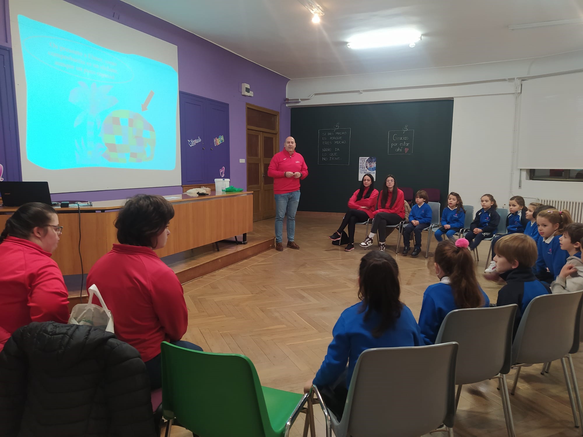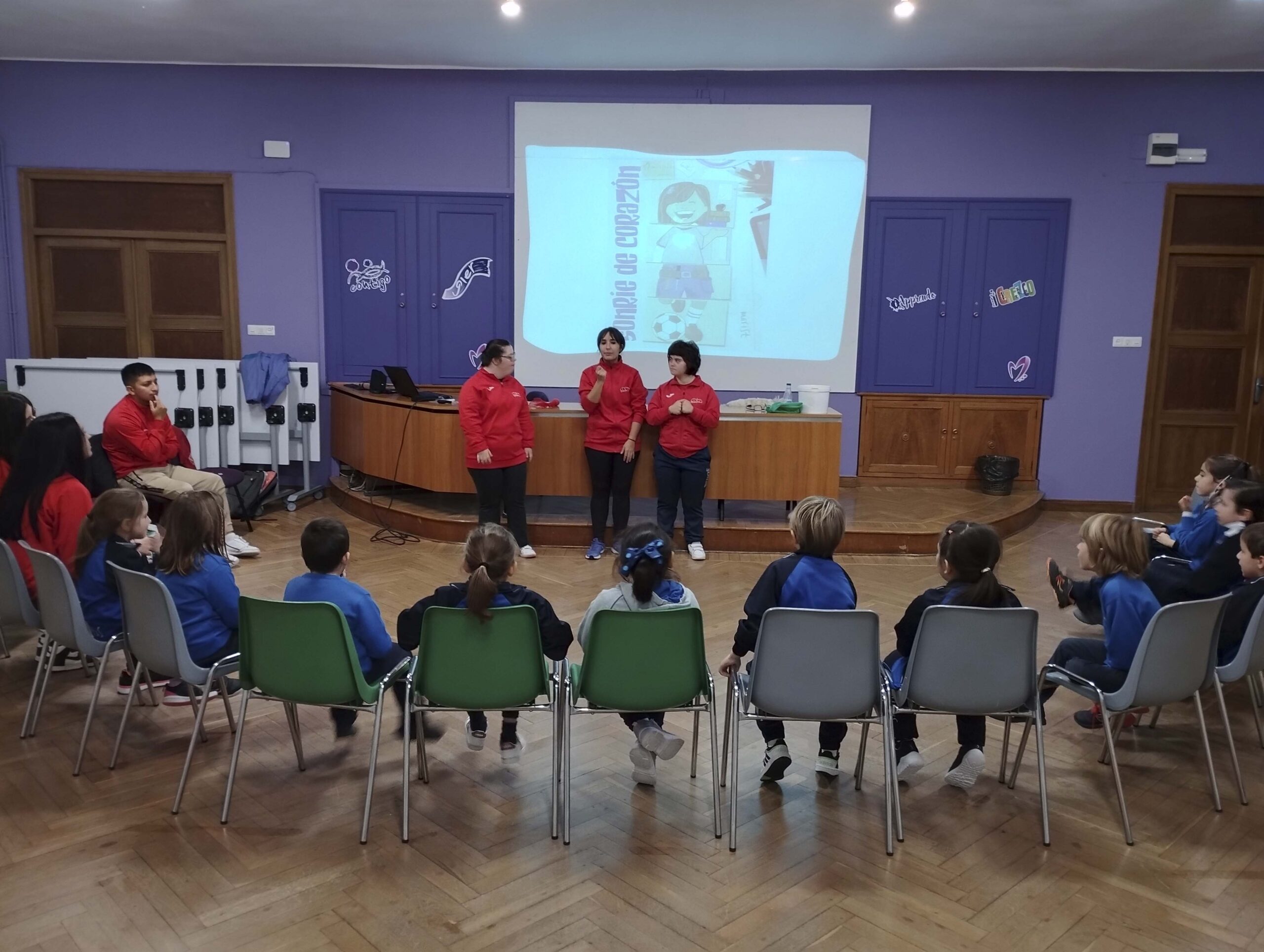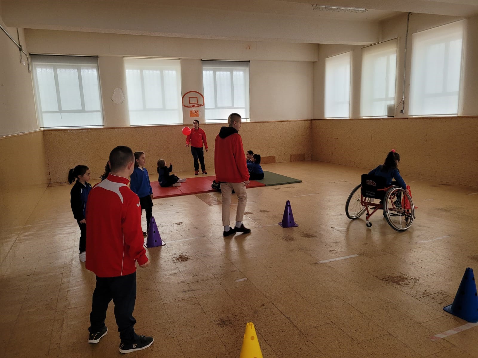 Desde Fundación AVIVA hemos compartido varias acciones de convivencia. Una de ellas ha sido con alumnos de 1º de primaria, con los que hemos hablado de accesibilidad y han practicado deporte adaptado. Otra ha sido con los alumnos de 1º de ESO a los que David, Paula y Jose Luis invitaron a participar en nuestras actividades. Durante la semana, algunos de estos alumnos han convivido en las actividades de deporte y cocina.