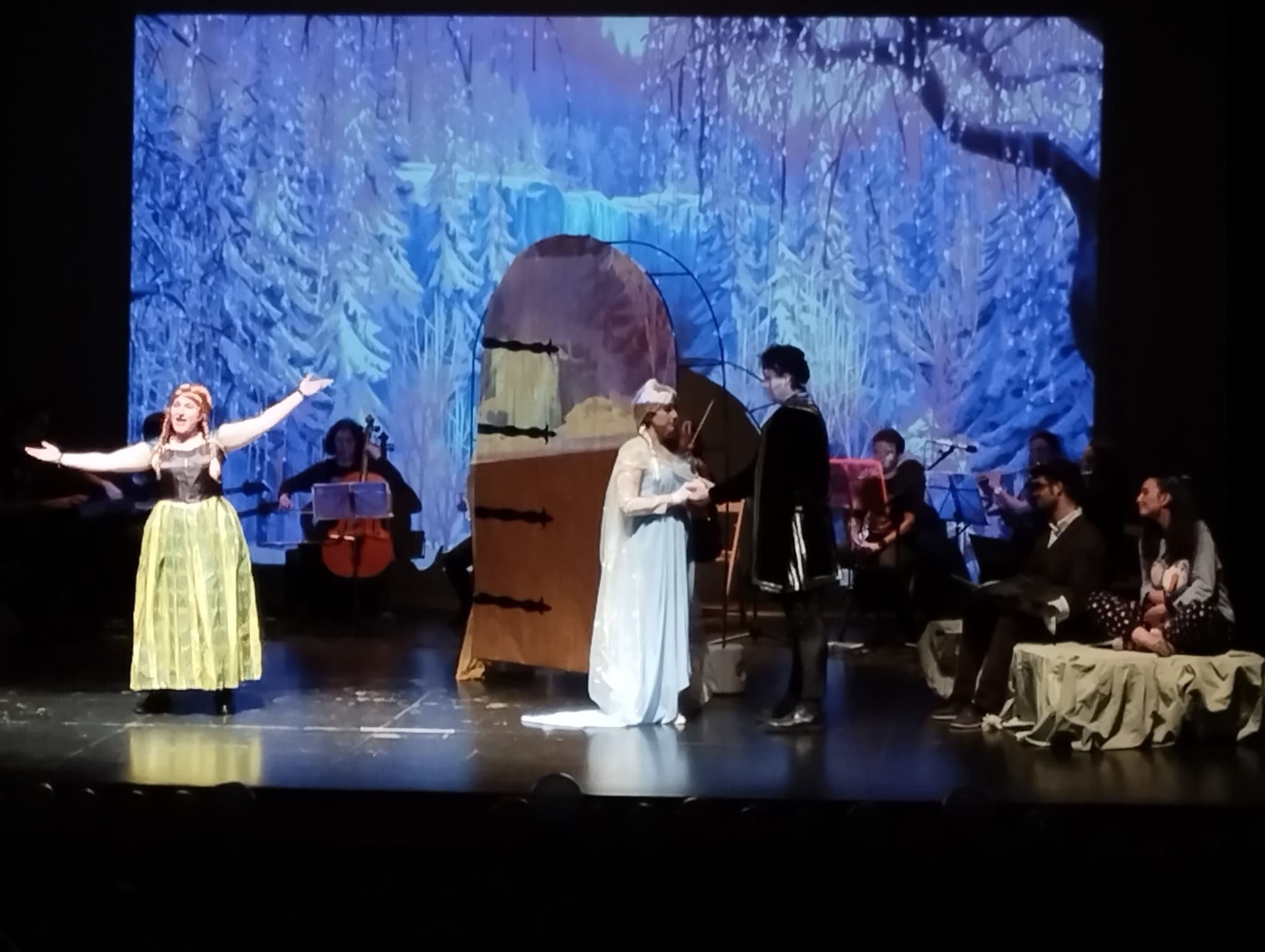 En esta ocasión el musical que han representado, a beneficio de la Asociación ATRA y Oesidad, se titula “Un cuento antes de dormir”. En él disfrutamos de varios fragmentos de películas como La Sirenita, Toy Story, el libro de la selva, Aladín, Piratas del Caribe, Hércules o Frozen. En esta última actuaba Sara Sieria, voluntaria del taller de artes plásticas de AVIVA, representando el papel de la princesa Anna, hermana de Frozen.