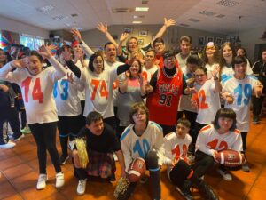 El sábado de Carnaval es el día en el que tradicionalmente realizamos nuestra fiesta. En esta ocasión, todos los participantes teníamos que venir con disfraces relacionados con el deporte. Alrededor de 80 personas participamos en la fiesta. Jugadores de rugby, futbol, baloncesto, tenis, lucha libre, gimnastas, amazonas, bailarinas de zumba, animadoras, árbitros, karatekas, etc. Todos tuvimos nuestro momento de protagonismo para desfilar y hacernos una foto para el recuerdo.