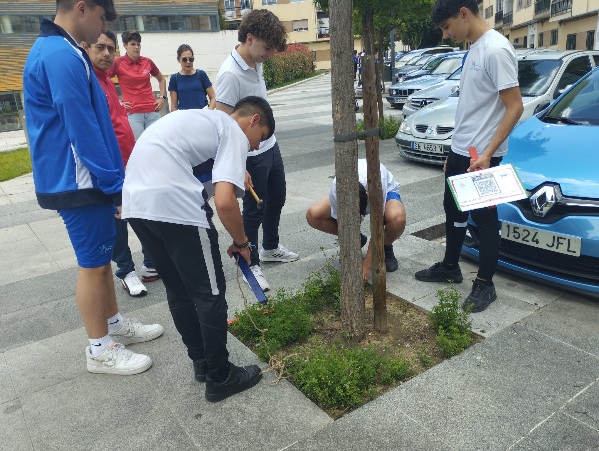 Por eso, en el día mundial del medio ambiente, hemos vuelto a trabajar juntos con los compañeros del colegio San Estanislao. Con ellos hemos señalizado los alcorques y puesto algunos anuncios de acciones que pueden dañar las plantas, como tirar colillas, dejar a los perros que hagan sus necesidades en ese espacio.