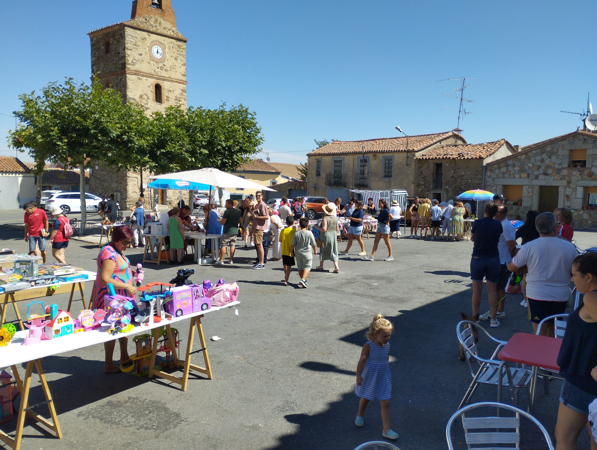 Este pueblo, situado a 42 kilómetros de Salamanca, ha organizado a lo largo del día de hoy, un fantástico mercadillo solidario en su plaza mayor. En AVIVA creemos en las segundas oportunidades y por eso nos ha ilusionado la iniciativa del pueblo de Horcajo; dar una segunda a vida a todos los objetos donados es una gran idea. Los visitantes han podido comprar a precios más asequibles y con carácter solidario libros y cuentos para todos los gustos, juguetes para todas las edades, peluches, elementos de bisutería, de artesanía, cuadros o un fantástico pan y dulces donados por la panadería del mismo pueblo. Después de varias semanas de trabajo de recepción de objetos, clasificación y organización, a las 12 de la mañana se inauguró este primer mercadillo solidario del pueblo de Horcajo Medianero.