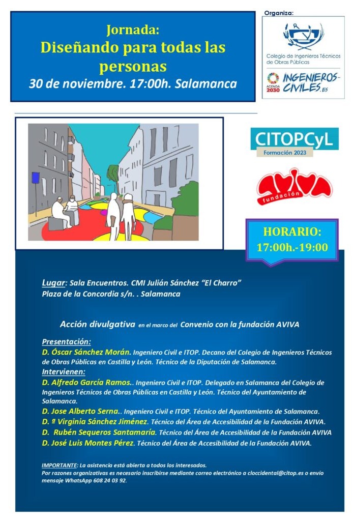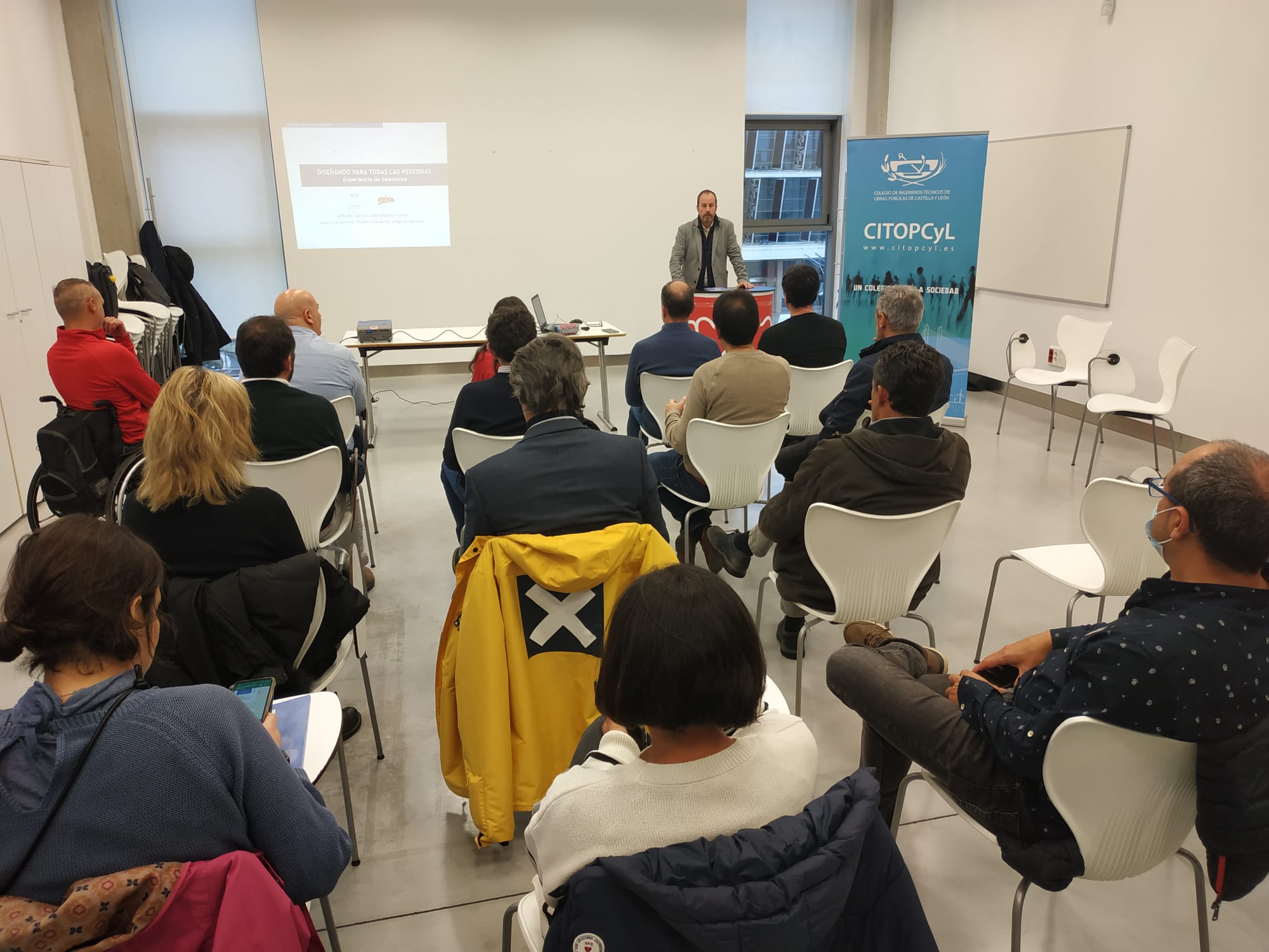La jornada fue presentada por el decano del Colegio, Óscar Sánchez Morán. Tuvo una primera parte expositiva, en la que Alfredo García y Jose Alberto Serna, ambos ingenieros técnicos de obras públicas, presentaron el diccionario de accesibilidad como herramienta de apoyo para diseñar las ciudades de manera más accesible.