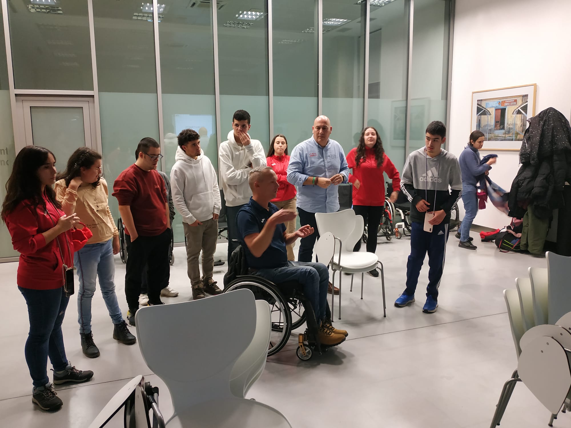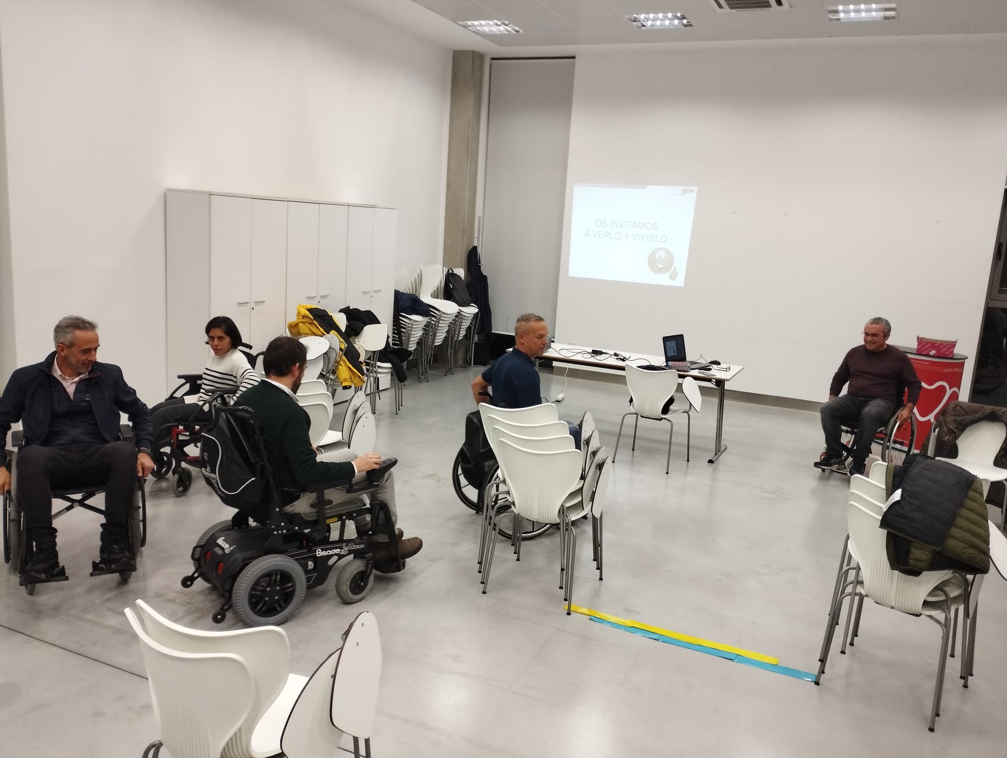 Posteriormente, desde fundación AVIVA, Jose Luis Montes, Rubén Sequeros y Virginia Sánchez, expusieron la necesidad de implicar a las propias personas con discapacidad en los procesos de diseño de espacios públicos. Pusieron algunos ejemplos en los que AVIVA a intervenido como asesor y evaluador, tales como el diseño de parques infantiles, evaluaciones de gasolineras, plazas de aparcamiento, pasos de peatones, etc. Para finalizar, todos los asistentes realizaron una práctica experiencial de movilidad en silla de ruedas y una guía con antifaces.