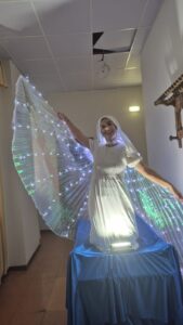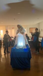 El taller de “Cocinamos juntos” nos volvió a sorprender con unas delicias navideñas como entrantes. Después comenzó la comida de cotillón, que estaba deliciosa. Mientras esperábamos el momento de las campanadas, tuvimos sobremesa con baile y en ese momento tan festivo, recibimos a la “Rosalia” quien nos dio las campanadas. En un altar vestida como en la portada de su nuevo disco “LUX” entró al salón para dar unas campanadas llenas LUZ, MÚSICA Y CORAZÓN. Brindamos por el nuevo año y comenzó la fiesta con un remix de los temas más conocidos de Rosalia, que puso en pie a todos los asistentes del cotillón hasta fin de fiesta. El equipo de Play DJ se encargó de animar la fiesta, son el alma de todas nuestras fiestas.