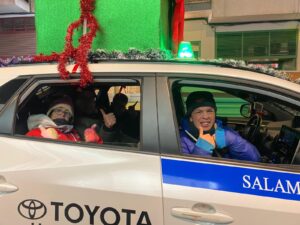 De nuevo, aceptamos encantados la invitación de nuestros amigos de Radiotaxi Salamanca, que decoraron sus vehículos para convertirlos en auténticas carrozas sobre ruedas. Gracias a ellos, pudimos disfrutar del recorrido como pasajeros privilegiados y vivir de cerca la emoción del público.