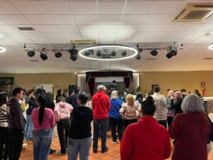 En esta ocasión, además, quiso sorprendernos con una canción creada especialmente para AVIVA. Esta pieza nació de las palabras e ideas que recogió durante su anterior visita con los grupos de Ritmo y Danza. Ahora, esas emociones compartidas se han transformado en letra, voz y melodía.