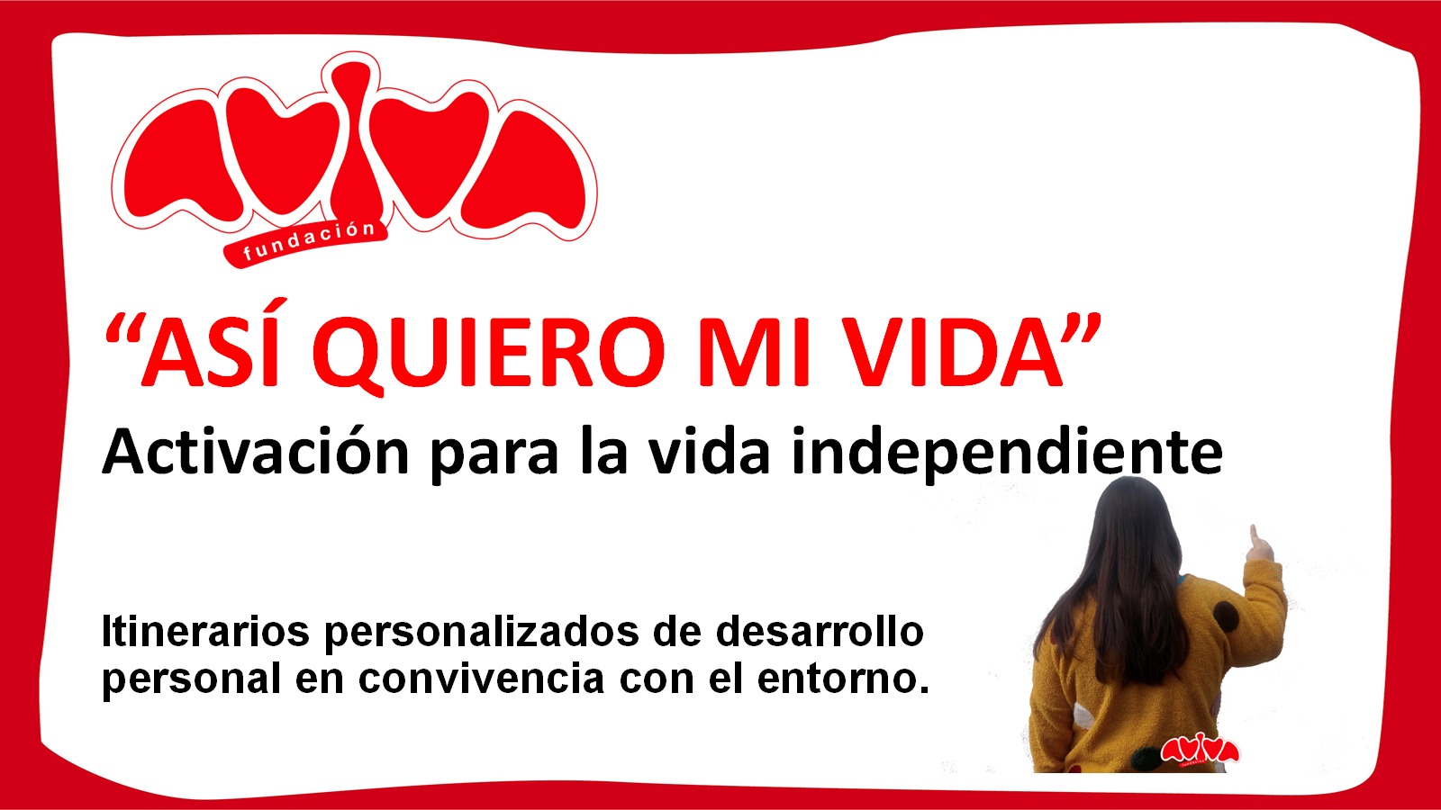 “Así quiero mi vida” es un programa que desarrolla la Fundación AVIVA. Su objetivo diana es la activación de actitudes en los participantes para el desarrollo de una vida independiente. Fomenta la adquisición de habilidades de la vida diaria y se desarrolla íntegramente en la comunidad.